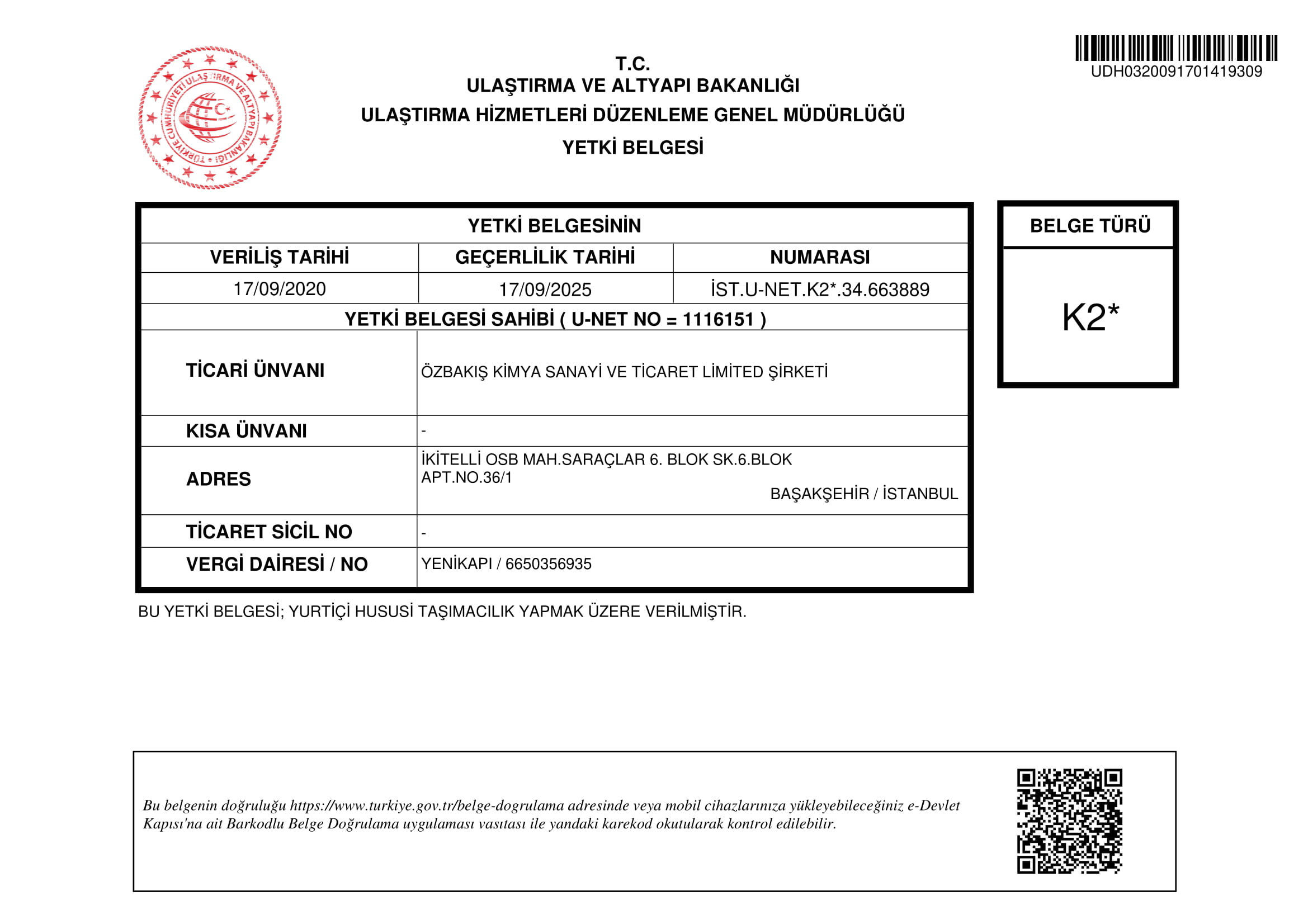 K2 YETKİ BELGESİ
